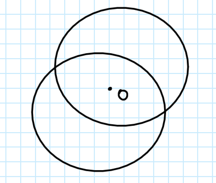 Narysuj koło i jego obraz odbity symetrycznie względem punktu we wnętrzu.