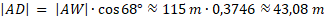 Najpierw oblicz długość AD korzystając z przybliżonej wartości