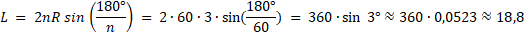 Oblicz obwód sześćdziesięciokąta foremnego, który jest wpisany w okrąg o promieniu