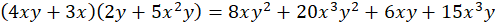 W tym zadaniu przedstaw wyrażenie (4xy + 3x)(2y + 5x2y) za pomocą sumy algebraicznej.