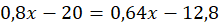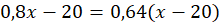 0,8x – 20 - liczba kredek zatemperowanych po wyjęciu 20 z nich