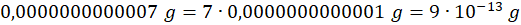 W tym zadaniu przedstaw 0,0000000000007 grama za pomocą notacji wykładniczej.