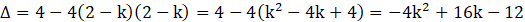 Zakładamy 2 – k > 0, czyli k < 2.