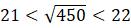 Liczba 21 podniesiona do kwadratu jest mniejszą od 450, a liczba 21 podniesiona do kwadratu jest większa od 450. Czyli liczba