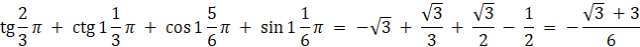 W tym zadaniu musisz obliczyć wartość podanego wyrażenia, wyznaczając odpowiednie wartości funkcji trygonometrycznych.