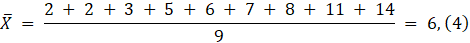 Mediana to wartość środkowa zbioru danych uporządkowanych rosnąco.