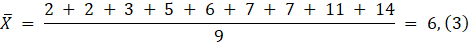 Po usunięciu liczby 7 z danego zestawu liczb ich średnia wynosi: