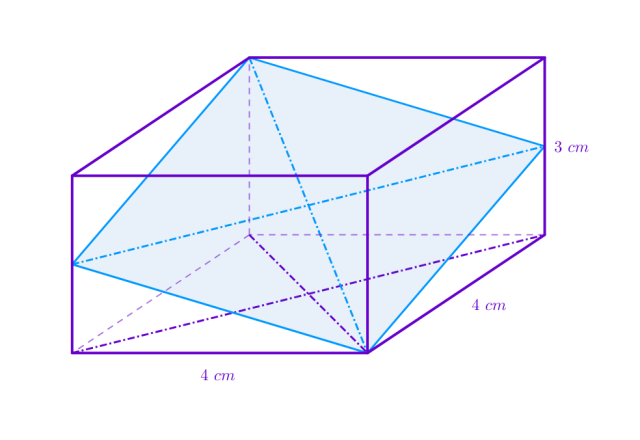 Dany jest prostopadłościan o wymiarach 3 cm ⨉ 4 cm ⨉ 4 cm. Znajdź przekrój w kształcie rombu o największym polu i oblicz jego pole.