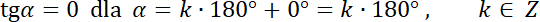 Znajdź miary kątów, dla których tangens jest równy zeru.