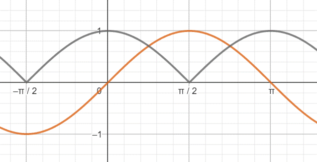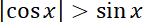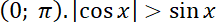 nierówność jest spełniona, a więc wykres funkcji cosinus znajduje się nad wykresem funkcji sinus.