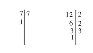 Zapisz rozkład na czynniki pierwsze obu liczb i podaj największy wspólny dzielnik. Czyli wypisz liczby, które powtórzyły się w dwóch rozkładach i oblicz ich iloczyn. NWD(7,12) = 1.