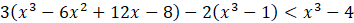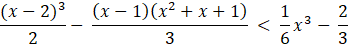 Aby rozwiązać nierówność, pomnóż ją obustronnie razy 6. Następnie po lewej stronie skorzystaj ze wzorów skróconego mnożenia na sześcian różnicy i różnicę sześcianów. Wymnóż wyrażenia w nawiasach, a następnie zredukuj jednomiany podobne. Przenieś wyrażenie znajdujące się z prawej strony na lewą, odejmując je obustronnie. Rozwiąż otrzymane równanie kwadratowe.