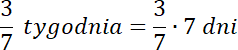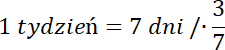 1 tydzień to 7 dni. Przekształć to równanie, aby otrzymać szukaną wartość.