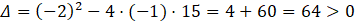 Rozwiązujemy to równanie za pomocą wyróżnika równania kwadratowego
