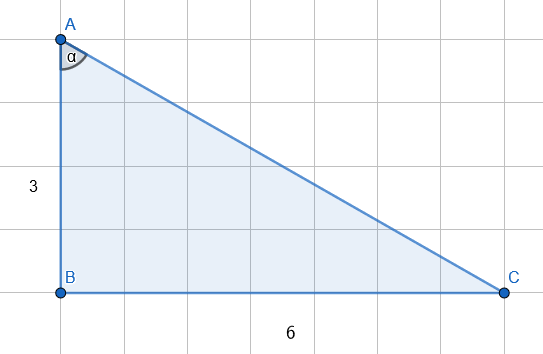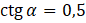 Musisz narysować trójkąt prostokątny z kątem alfa, którego cotangens jest równy 0,5.