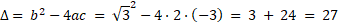 Do wyznaczenia miejsc zerowych określamy wyróżnik trójmianu – jest on dodatni, więc funkcja posiada