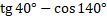 Tangens w pierwszej ćwiartce jest dodatni. Cosinus w drugiej ćwiartce jest ujemny. Zamień wyrażenie