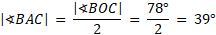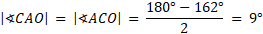 Zauważ, że przeciwprostokątna trójkąta ABC jest średnia okręgu, więc przeciwległy kąt ma miarę 90°. Zauważ, że kąty AOC i ABC są kątami środkowym i wpisanym, opartymi na tym samym łuku. Ponadto trójkąt AOC jest równoramienny.