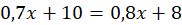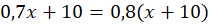 0,7x + 10 - liczba czerwonych tulipanów po dołożeniu 10