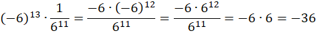 Zauważ, że liczba -6 jest podniesiona do potęgi o parzystym wykładniku, dlatego wynik tego potęgowania będzie dodatni: