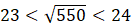 Liczba 23 podniesiona do kwadratu jest mniejszą od 550, a liczba 24 podniesiona do kwadratu jest większa od 550. Czyli liczba