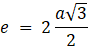 Długość odcinka e jest równa długości dwóch wysokości trójkątów równobocznych, z których zbudowana jest podstawa: