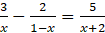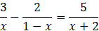 Doprowadź ułamki do jednakowych mianowników, rozwiąż równanie i sprawdź, czy wyniki należą do dziedziny: