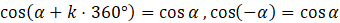 Wykorzystaj wzór cos (α+k⋅360°) = cos α do odnalezienia pozostałych kątów: