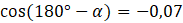 Wiedząc, że cos α = -0,07 oraz -180° < α < 270°, określ wszystkie możliwe wartości α.
