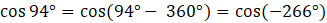 Kąt -266° nie spełnia założeń, ale możesz go wykorzystać do obliczenia kolejnego kąta.