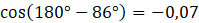 Dlatego zamiast α podstawiamy 86°, ponieważ
