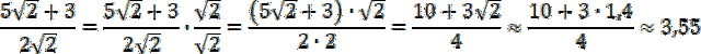 Usuń niewymierność z mianownika podanej liczby, czyli pomnóż licznik i mianownik ułamka przez pierwiastek znajdujący się w mianowniku. Uzyskany wynik przedstaw w najprostszej postaci. Skorzystaj z podanego przybliżenia.