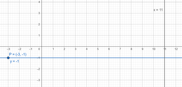 Wykonaj rysunek pomocniczy. Zaznacz na nim prostą i punkt podany w treści zadania i prostą prostopadłą do niej przechodzącą przez punkt P.