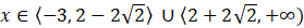 Dla każdej z otrzymanych nierówności odpowiednio opuść symbol wartości bezwzględnej, a następnie przenieś oba wyrażenia na jedną stronę. Wyłącz wspólny czynnik przed nawias, a następnie z postaci iloczynowej wielomianu odczytaj jego pierwiastki, które pozwalają na naszkicowanie wykresu. Z otrzymanego wykresu odczytaj rozwiązania odpowiednich przypadków, pamiętając o tym, by uwzględnić odpowiednio dziedzinę. Następnie połącz otrzymane rozwiązania w jedną odpowiedź.