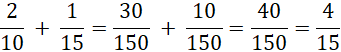 Znajdź wspólny mianownik poprzez mnożenie ze sobą mianowników, następnie pomnóż na krzyż licznik z mianownikiem, a na końcu dodaj do siebie, aby otrzymać wynik.