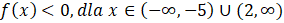 Zapisz wzór funkcji w postaci kanonicznej, policz jej miejsce zerowe, narysuj jej wykres oraz podaj argumenty, dla których ma wartości ujemne i dodatnie.
