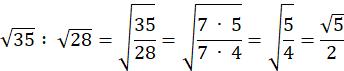 Korzystając z faktu, że iloraz pierwiastków to pierwiastek ilorazu: