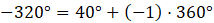 Dany jest kąt o mierze -320°. Przedstaw go w formie: α+ k ⋅ 360° wiedząc, że -180° < α < 180°, a k jest dowolną liczbą całkowitą.