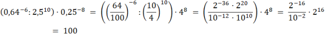 Zamień ułamki dziesiętne na zwykłe. Zapisz każdą z liczb jako iloczyn potęg o podstawach 2 i 10. Następnie skorzystaj z praw działań na potęgach, uprość wyrażenie i oblicz jego wartość.