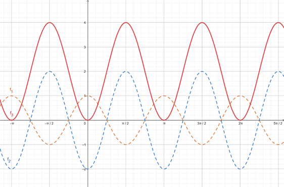 Naszkicuj wykres cosinusa o dwukrotnie mniejszym okresie – powtarzającym się dwa razy więcej. Odbij go symetrycznie względem osi OX i zwiększ zakres wartości od -2 do 2. Podnieś całość o 2 jednostki do góry.