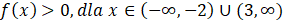 Zapisz wzór funkcji w postaci kanonicznej, policz jej miejsce zerowe, narysuj jej wykres oraz podaj argumenty, dla których ma wartości ujemne i dodatnie.