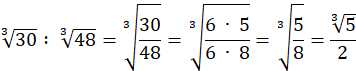 Korzystając z faktu, że iloraz pierwiastków to pierwiastek ilorazu: