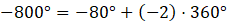 Dany jest kąt o mierze -800°. Przedstaw go w formie: α+ k ⋅ 360° wiedząc, że -180° < α < 180°, a k jest dowolną liczbą całkowitą.