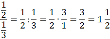 Zauważ, że kreska ułamkowa oznacza dzielenie. Aby podzielić ułamek przez ułamek, należy pomnożyć pierwszy ułamek przez odwrotność dzielnika, zgodnie z zasadą – „Mnożenie, to dzielenie przez odwrotność”.