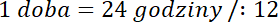 1 doba to 24 godziny. 1 godzina to 60 minut. Przekształć te równania, aby otrzymać szukaną wartość.