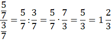 Zauważ, że kreska ułamkowa oznacza dzielenie. Aby podzielić ułamek przez ułamek, należy pomnożyć pierwszy ułamek przez odwrotność dzielnika, zgodnie z zasadą – „Mnożenie, to dzielenie przez odwrotność”.