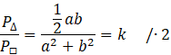 Zapisz stosunek powyższych pól. Z treści zadania wiesz, że wynosi on
