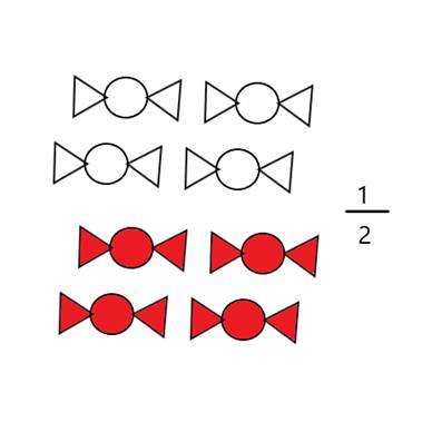 Pokoloruj co drugiego z 8 cukierków, czyli 4 cukierki na 8.