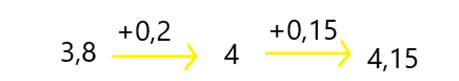 4,15 – 3,8 = 0,2 + 0,15 = 0, 35