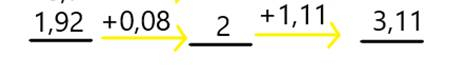 Na pierwszej strzałce napisz, ile brakuje od mniejszej liczby do kolejnej liczby naturalnej. Na drugiej strzałce napisz, ile brakuje od liczby w środku do większej liczby. Wynikiem odejmowania jest suma wartości umieszczonych na żółtych strzałkach.